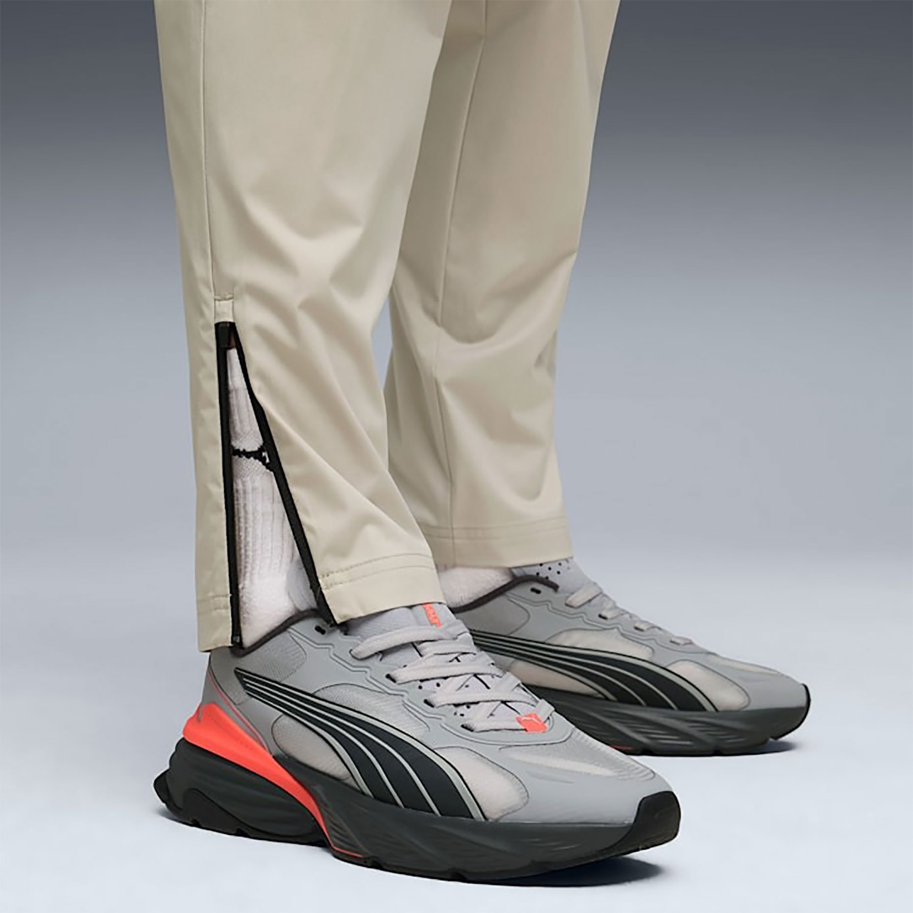 Эластичный пояс с внутренним шнурком позволяет регулировать посадку по фигуре, а аккуратные манжеты создают завершённый силуэт. Современный дизайн PUMATECH подчёркивается лаконичными линиями и фирменным стилем Puma, что делает брюки универсальными для спорта и повседневного гардероба.