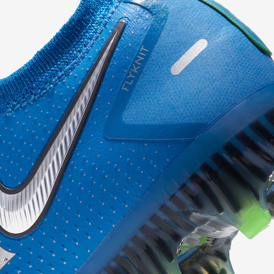 - Конструкция верха, разработанная на основе тестирования с участием атлетов, имеет более толстую и плотную текстуру в области носка и подъема стопы для оптимального сцепления и улучшенного контроля мяча.