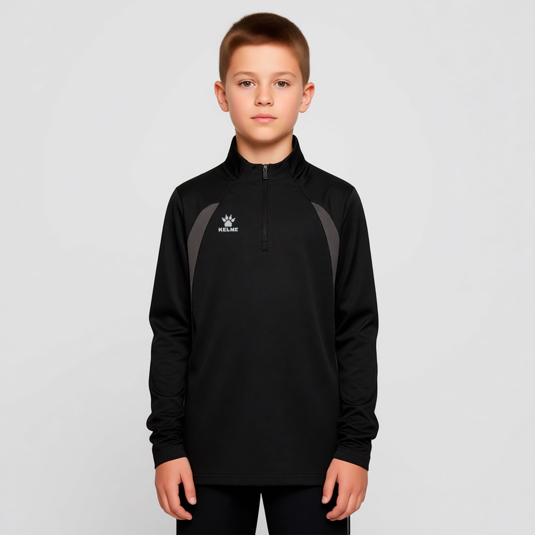 Скрытые петли на рукавах для больших пальцев позволяют зафиксировать рукава в нужном положении, исключая их задирание во время активных движений. Короткая молния обеспечивает удобство надевания и дополнительную вентиляцию при необходимости. Джемпер подходит для занятий футболом и другими видами спорта, где важны лёгкость, мобильность и комфорт. Благодаря сбалансированному крою и качественным материалам он не сковывает движений и помогает ребёнку сосредоточиться на тренировке.