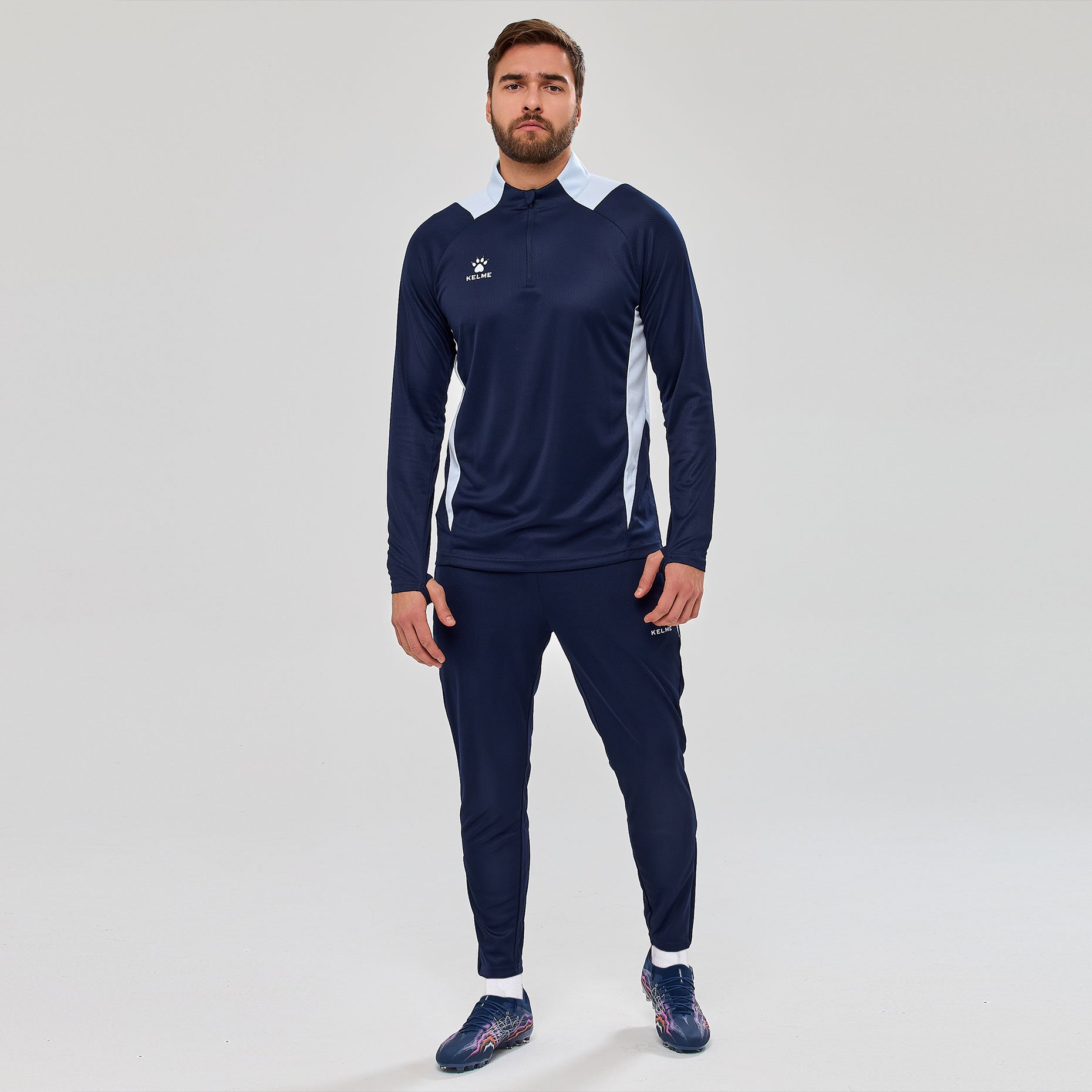 Джемпер тренировочный Kelme 1/2 Zip Training Top — удобная и технологичная модель для активных тренировок, сочетающая лёгкость, эластичность и функциональность. Выполнен из синтетической ткани с влагоотводящей технологией, которая эффективно испаряет влагу и поддерживает комфортный микроклимат во время интенсивных нагрузок. Приталенный крой обеспечивает свободу движений без лишнего объёма, а вставки из сетчатой ткани по бокам усиливают воздухообмен и способствуют быстрому высыханию материала.