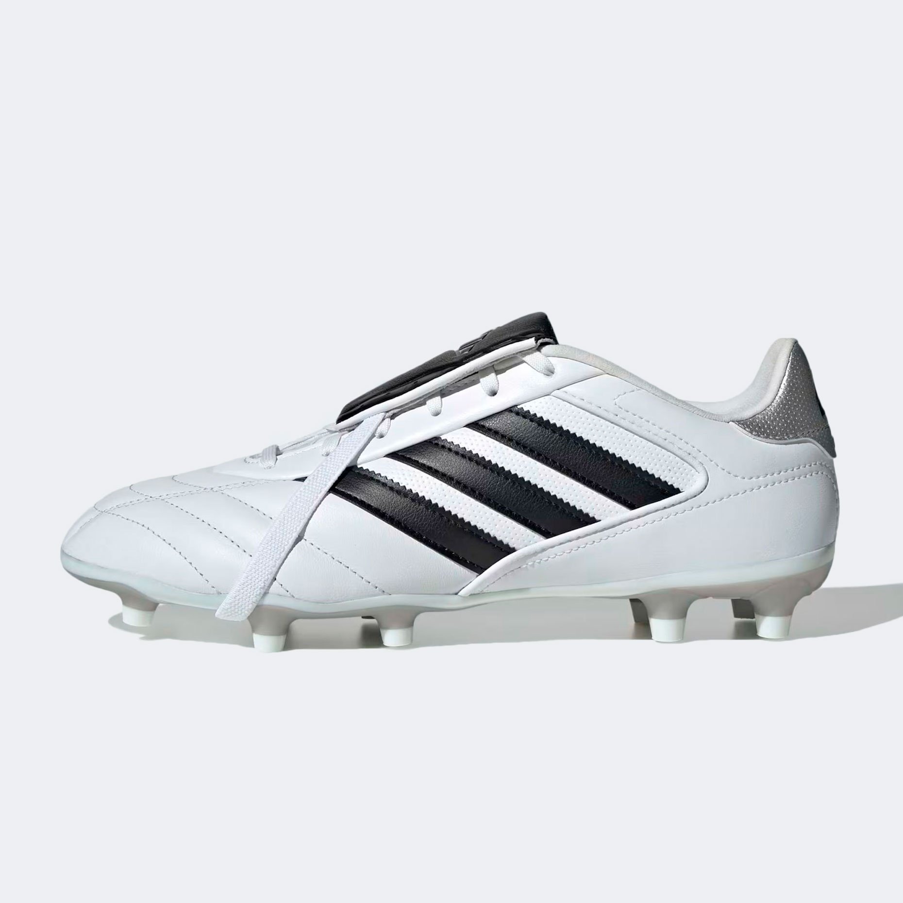 Продуманная конструкция бутс включает откидной язычок с фиксатором-резинкой для идеальной посадки по ноге, а стёганая передняя часть добавляет прочности и защиты. Специальная конфигурация подошвы с 13 шипами гарантирует отличное сцепление с поверхностью поля, позволяя максимально эффективно контролировать игру. Элегантный дизайн в ретро-стиле делает эти бутсы не просто спортивной обувью, а настоящим произведением искусства.