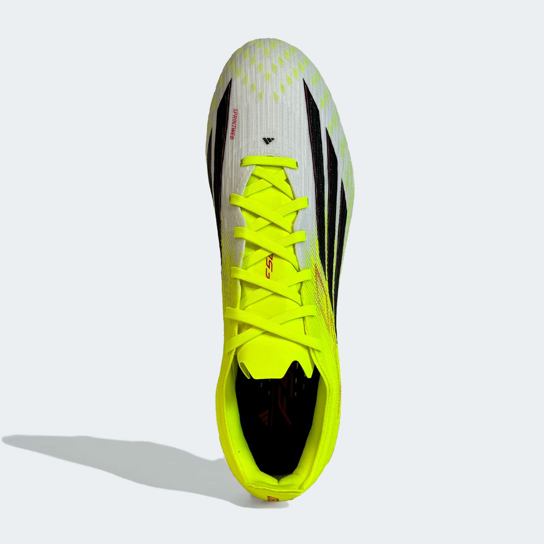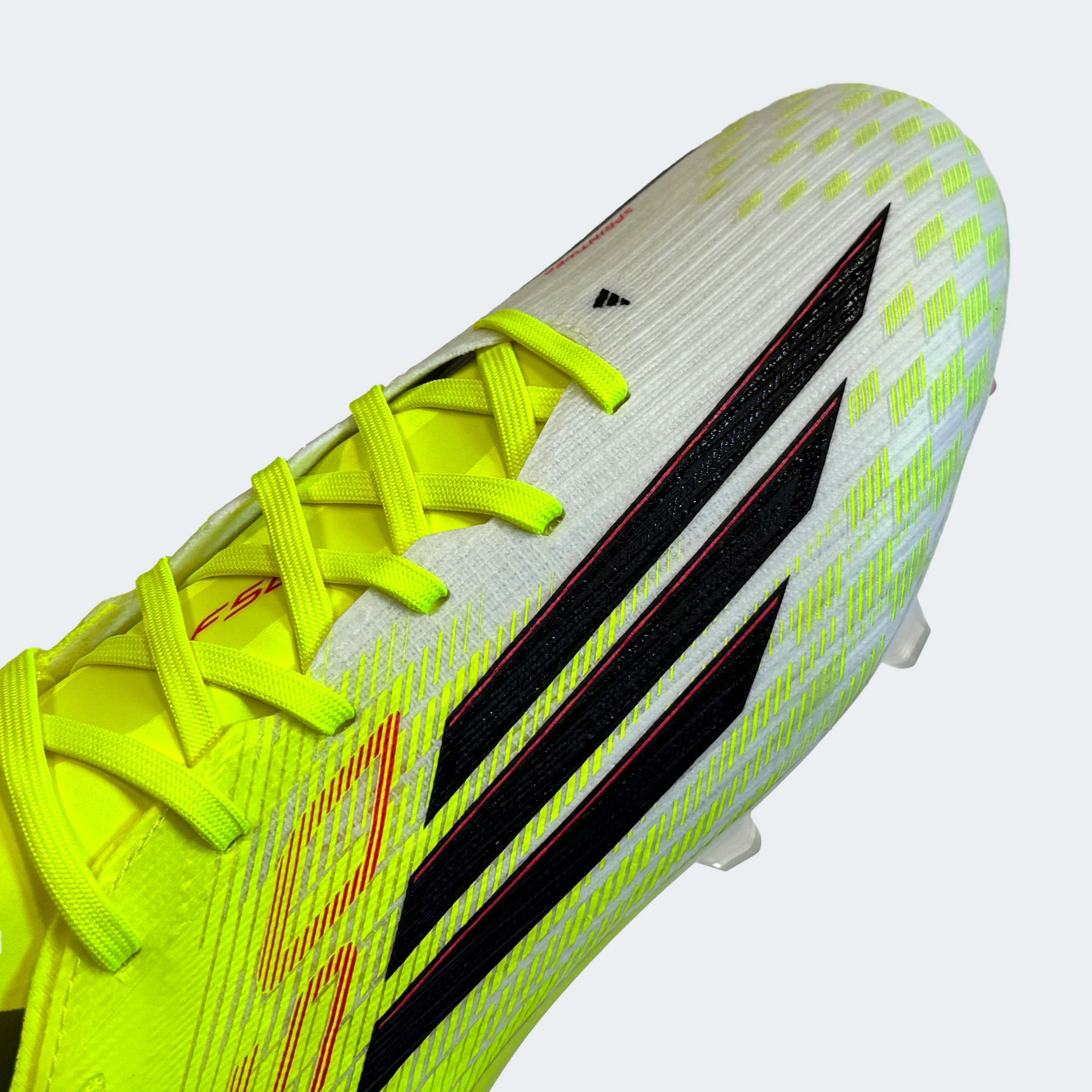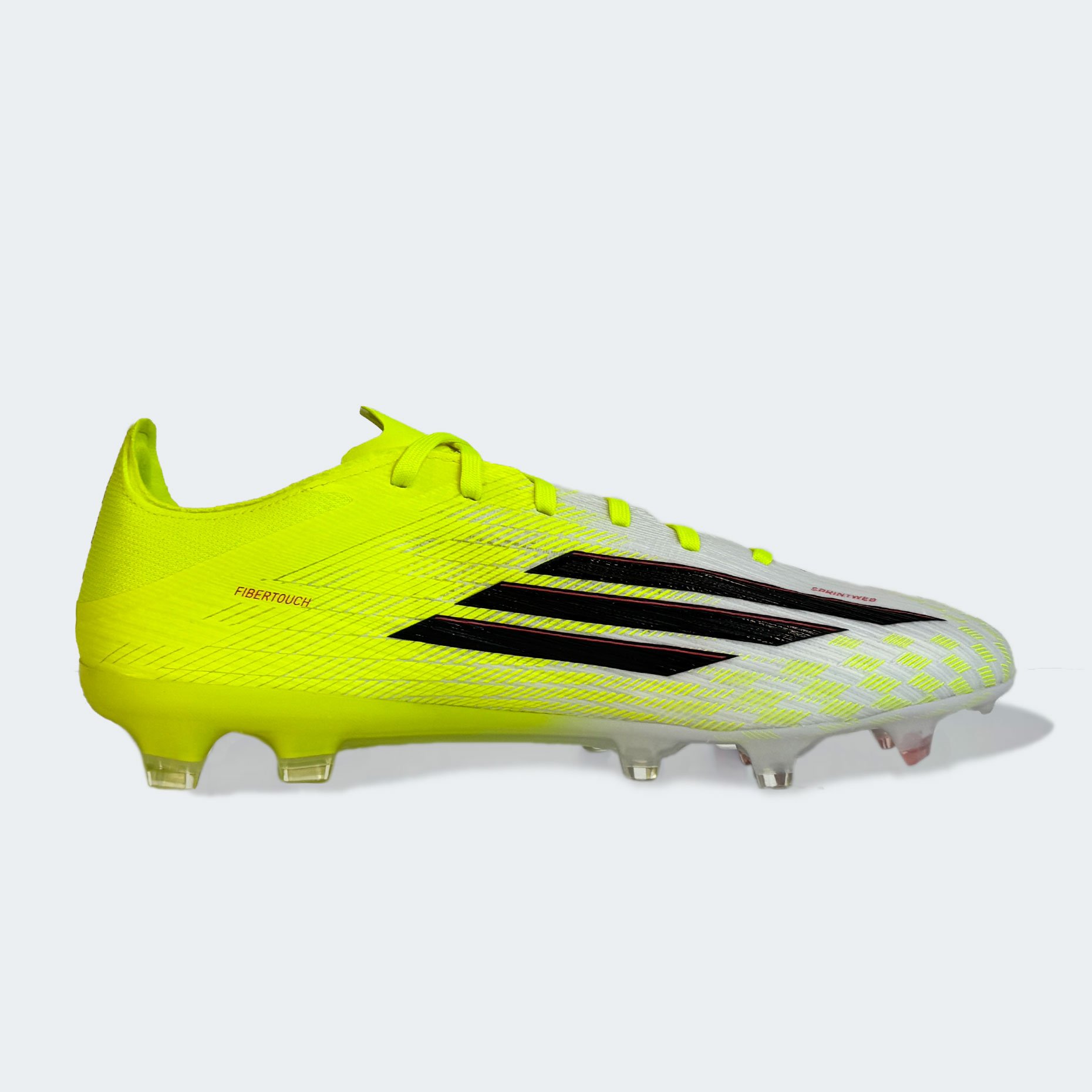- Верх Fibertouch с текстурой Sprintweb 3D — легкий и эластичный материал, обеспечивающий идеальное касание и контроль мяча при высоких скоростях.