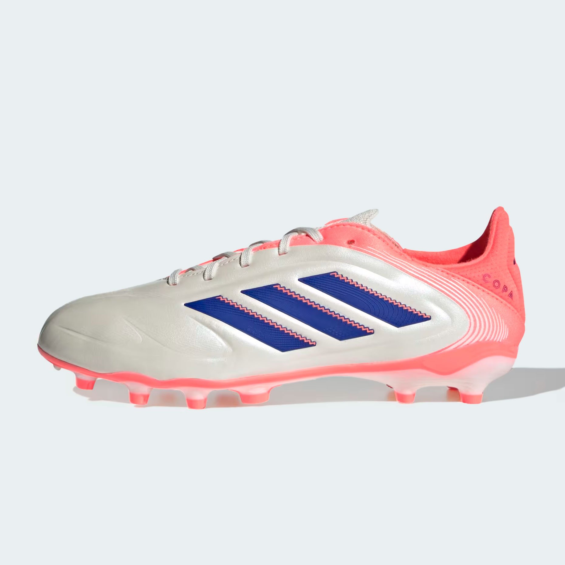 Бутсы детские adidas Copa Pure III Elite FG/MG — это профессиональная модель для юных футболистов, разработанная для игры на твёрдых полях с натуральным и искусственным газоном. Их уникальная конструкция обеспечивает отличное сцепление с поверхностью благодаря круглым шипам с прорезями в середине. Эти бутсы созданы для тех, кто стремится к совершенству в каждом движении и пасе.