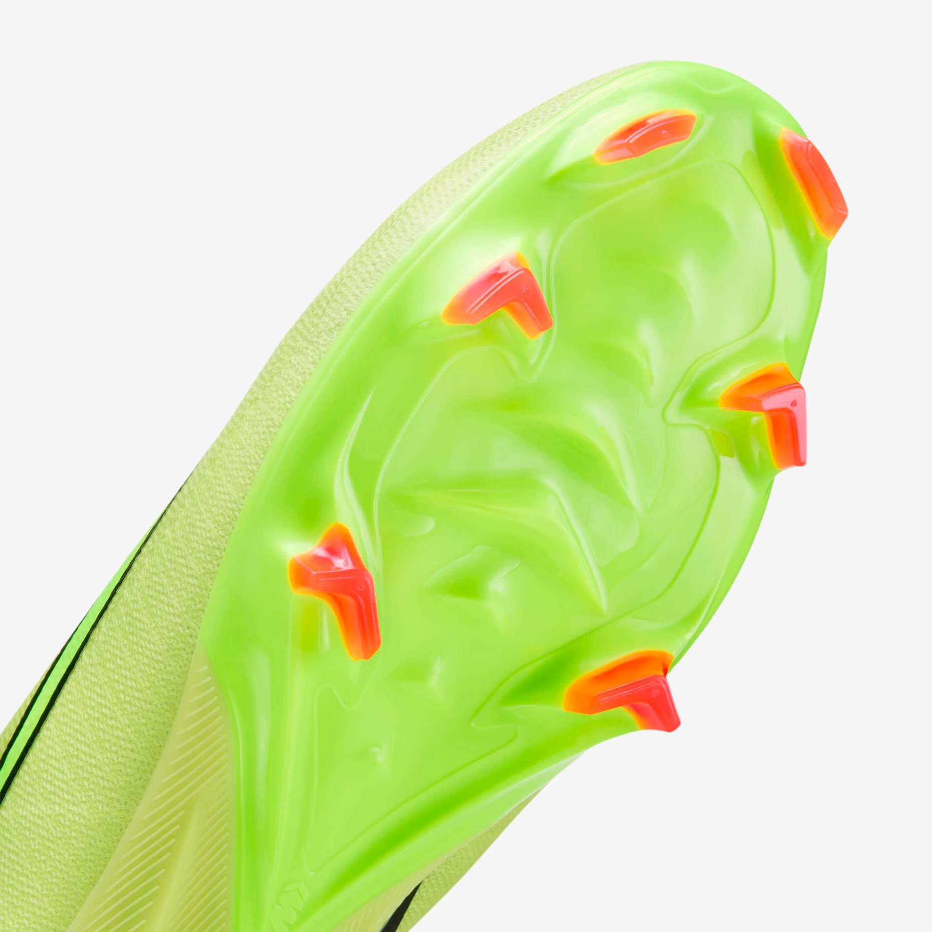 Цепкая поверхность верхней части, которая позволяет эффективно контролировать мяч даже на высоких скоростях, будь то дриблинг или удар по воротам. Революционная подошва с волнообразным рисунком протектора и каскадными шипами распределяет нагрузку, улучшая сцепление с поверхностью. Шипы в форме шеврона и лезвия обеспечивают быстрый старт и эффективное торможение, помогая футболисту быть на шаг впереди соперника.