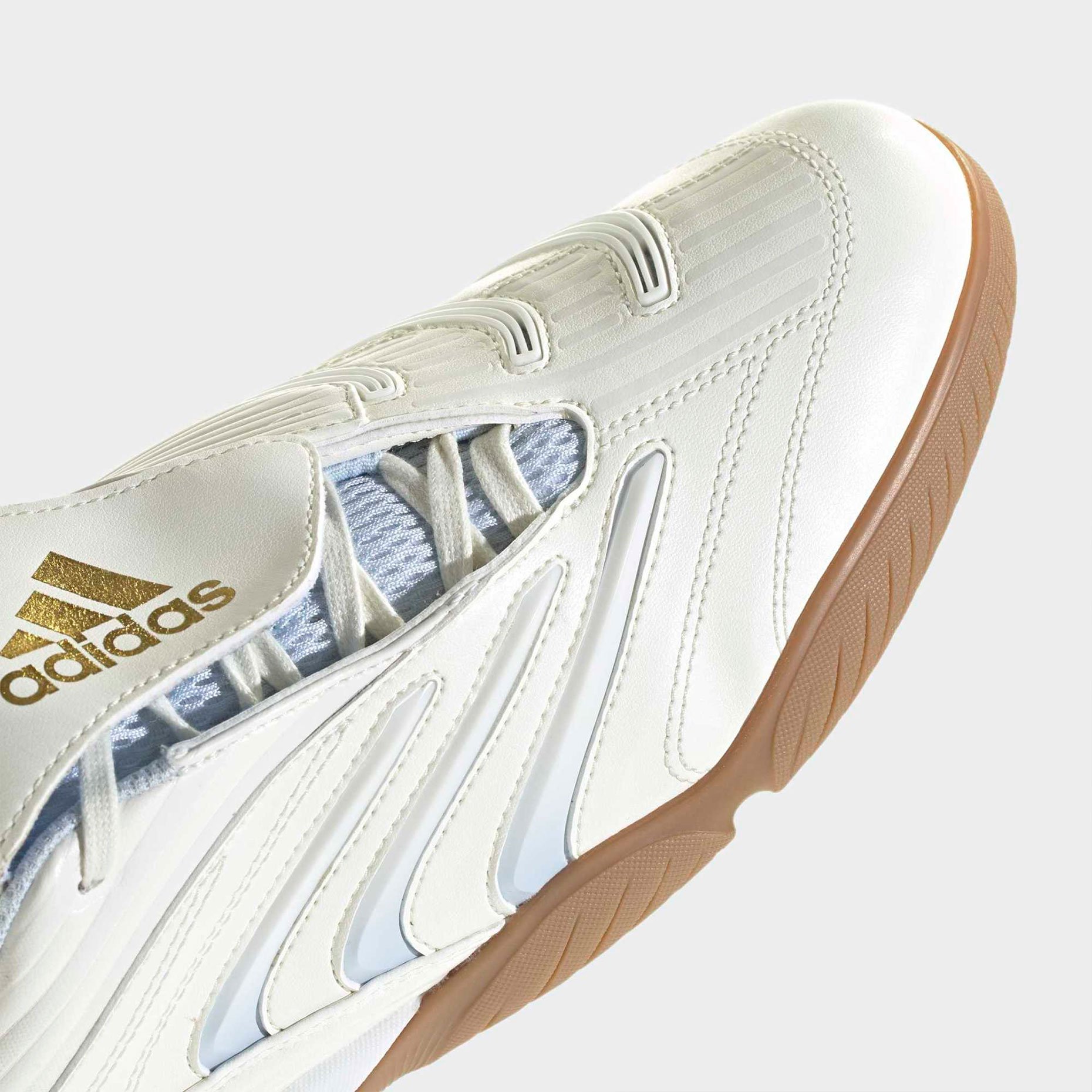 Упругая межподошва из легкого материала обеспечивает хорошую амортизацию и отдачу, снижая усталость при интенсивной игре. Резиновая подошва с выраженным рисунком протектора гарантирует надёжное сцепление на твёрдых покрытиях — паркете, бетоне и кортах. Вставки в зоне удара улучшают контакт с мячом, повышая точность ударов. Эти футзалки — не просто обувь для игры, а дань уважения футбольной истории adidas, объединённая с современными требованиями к производительности.