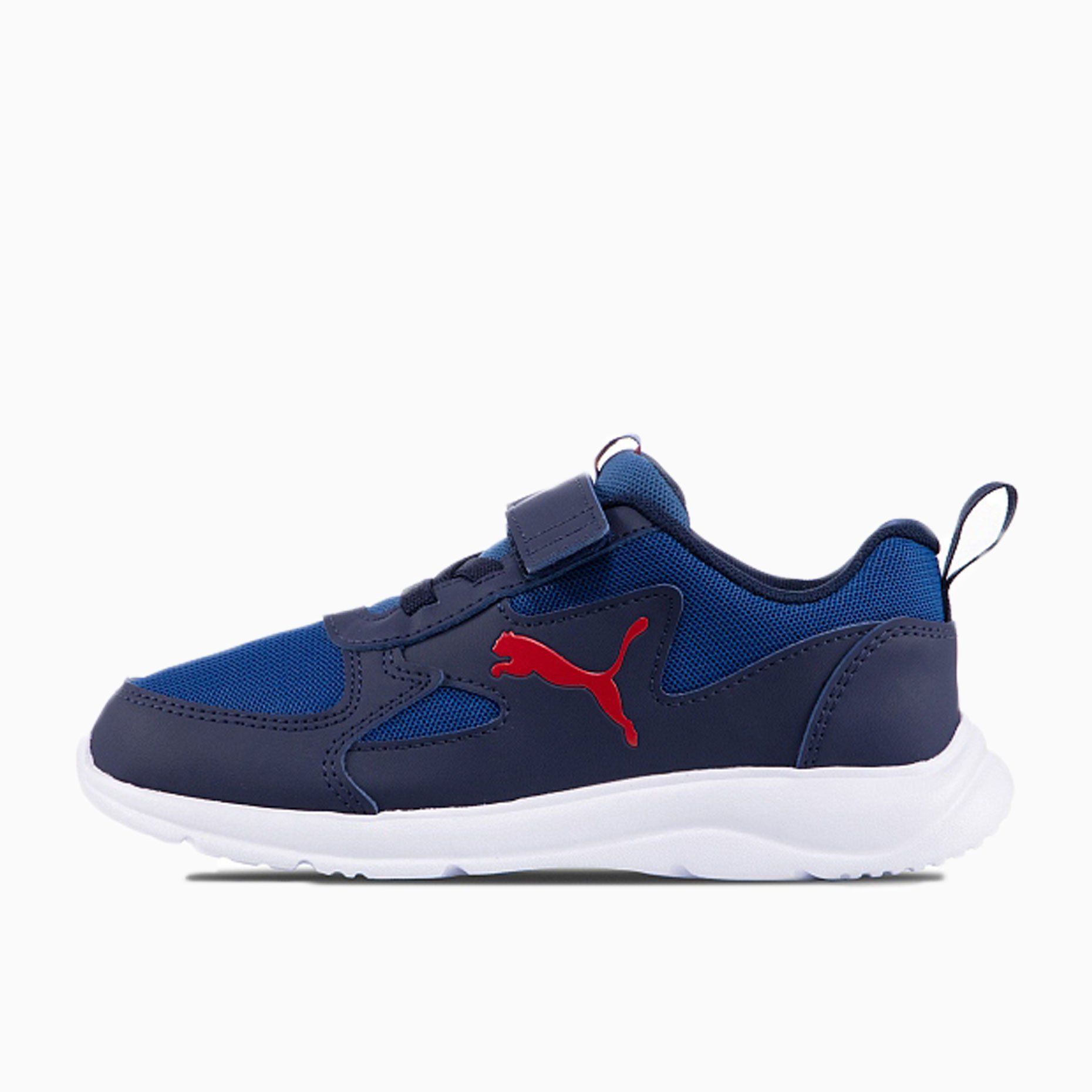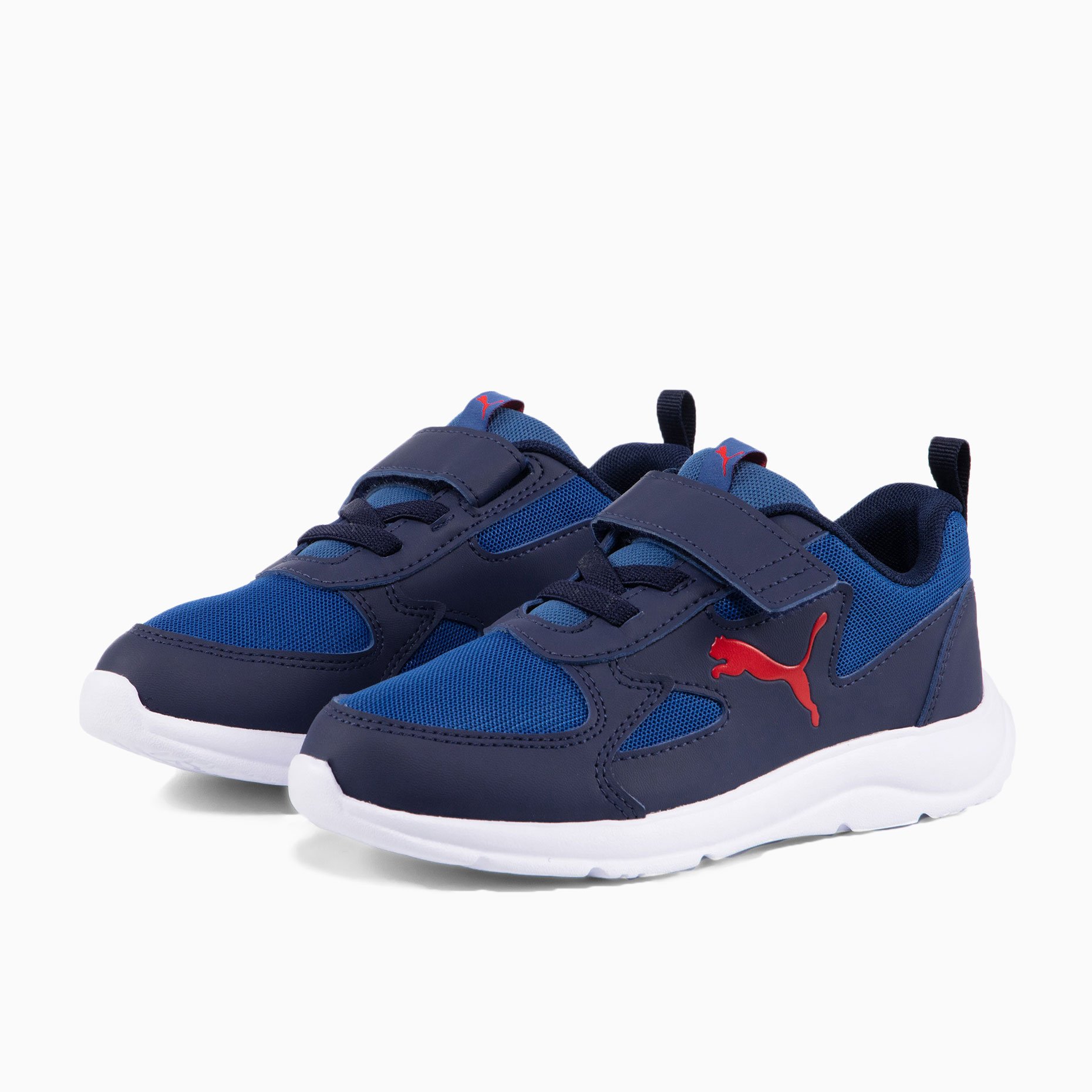 Кроссовки детские Puma Fun Racer — это стильная и удобная модель для активных детей, созданная для повседневной носки. Верх из текстиля и искусственной кожи с сетчатыми вставками обеспечивает отличную циркуляцию воздуха и комфорт в течение всего дня. Прямая шнуровка в сочетании с застежкой-липучкой позволяет надежно зафиксировать кроссовки на ноге, а петля на заднике помогает ребенку самостоятельно обуваться.