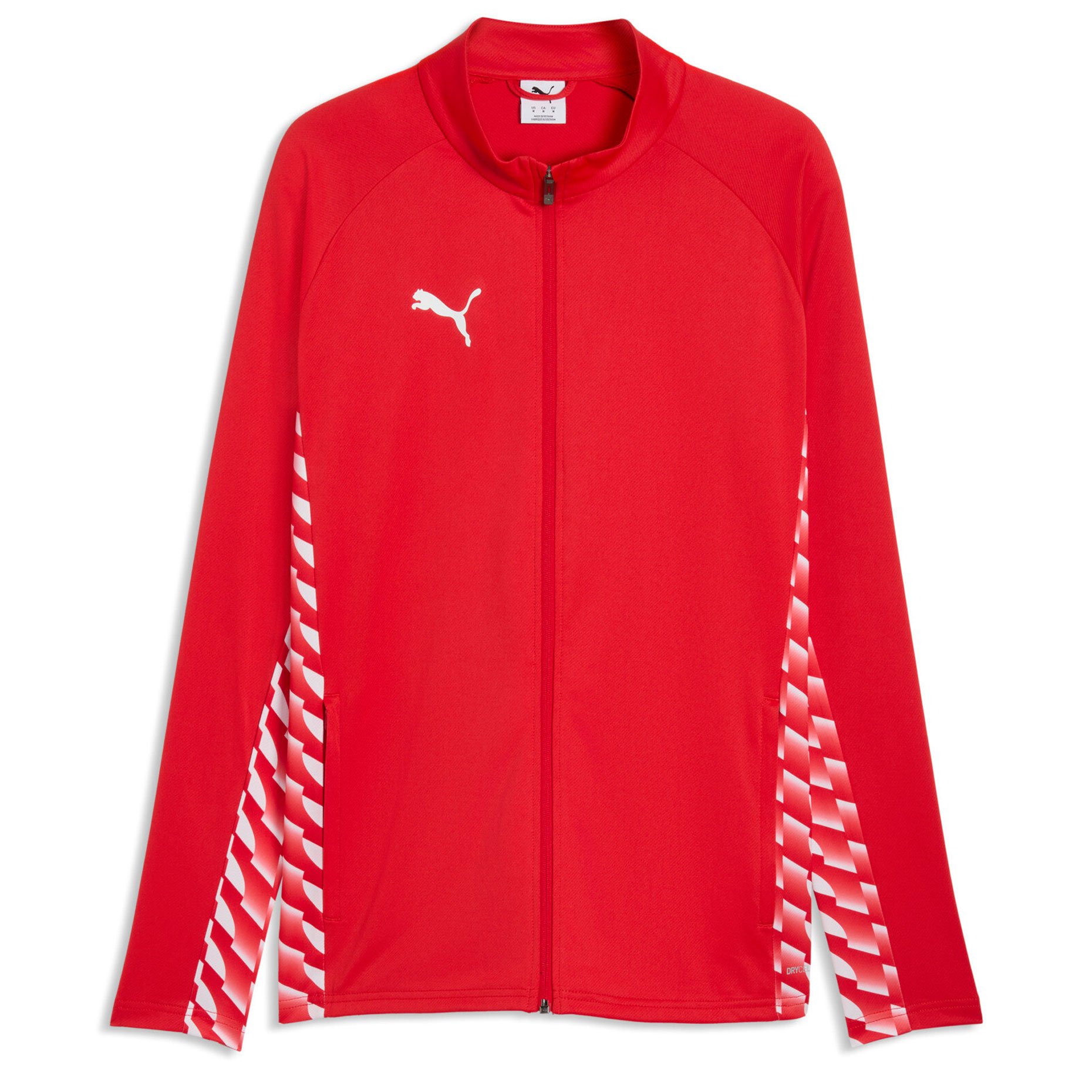 Приталенный крой обеспечивает современный спортивный силуэт и не сковывает движений. Полная молния позволяет легко регулировать теплообмен, а воротник-стойка обеспечивает дополнительный комфорт во время тренировок. Практичные боковые карманы на молниях подходят для безопасного хранения мелких вещей, а графические боковые панели, вдохновленные фирменным стилем PUMA Formstripe, подчеркивают динамичный дизайн коллекции teamLIGA26.