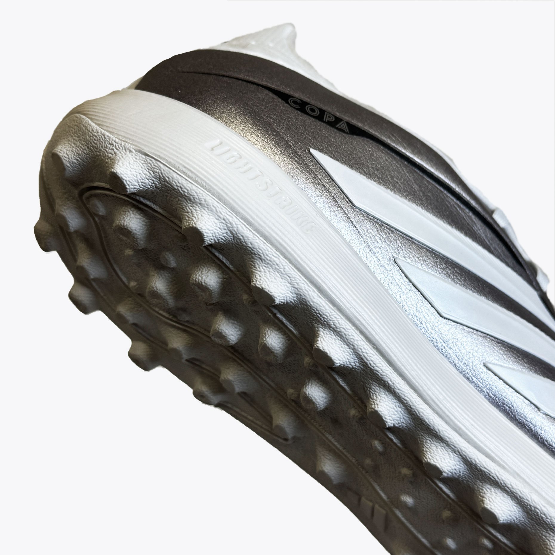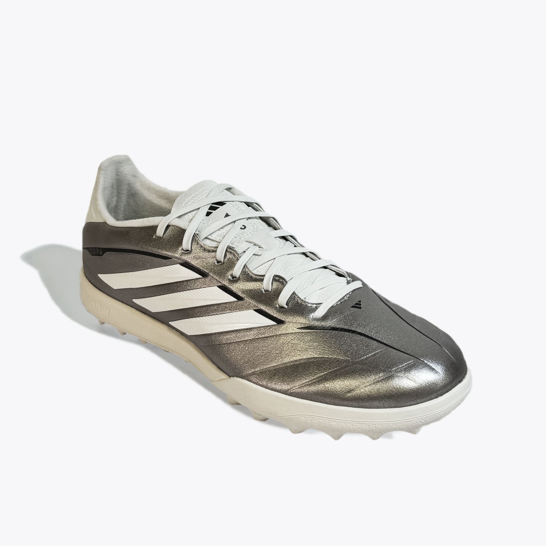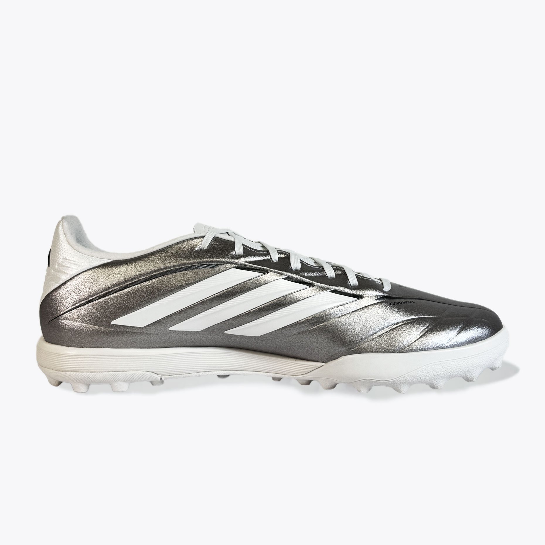 Шиповки adidas Copa Pure IV League TF — это обновлённая тренировочная модель, созданная для футболистов, для игры на твёрдых покрытиях с искусственным газоном и коротким ворсом. Эта версия продолжает традиции легендарной серии Copa, сочетая классический стиль с современными технологиями. Верх из синтетического материала Fusionfeel имитирует ощущение натуральной кожи — он мягкий, гибкий и идеально облегает стопу, обеспечивая превосходную тактильную чувствительность при контакте с мячом. Плавные линии дизайна подчёркивают элегантность модели, а плоские шнурки создают ровную зону удара, позволяя точнее контролировать пасы и удары.