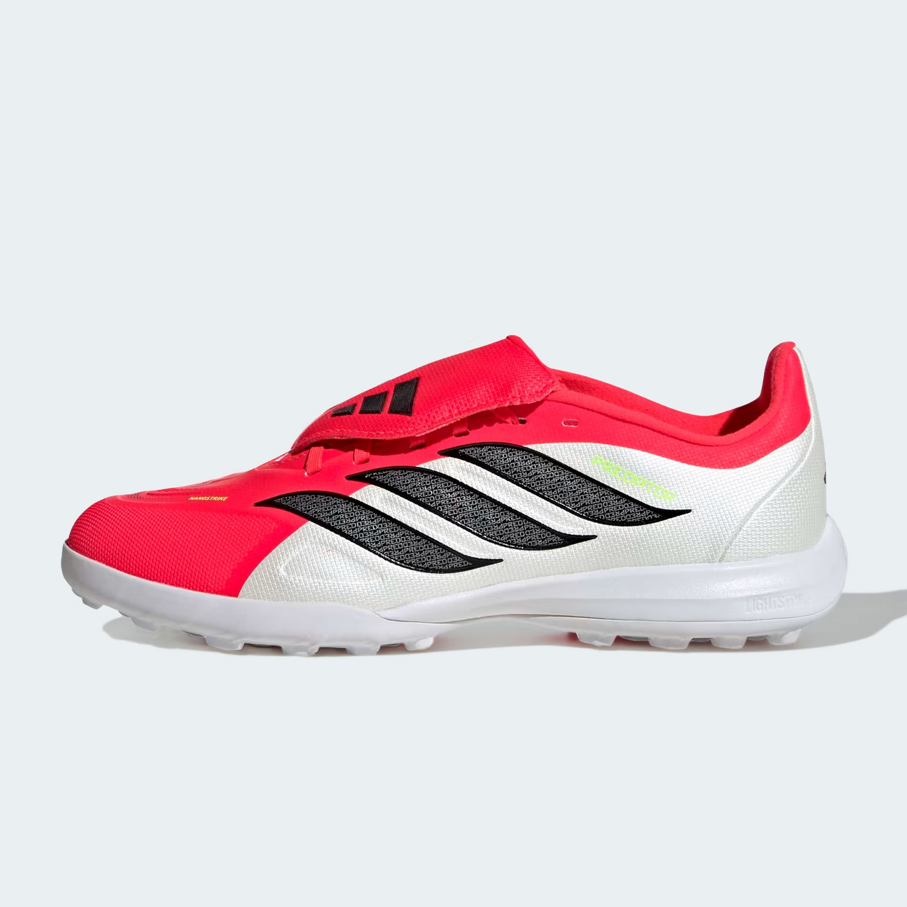 Детские шиповки adidas Predator League FT TF — это усовершенствованный вариант тренировочной обуви для игры на искусственном покрытии, в котором разработчики доработали ключевые элементы для повышения комфорта и игровых характеристик. Верх из инновационного материала Nanostrike и накладными элементами обеспечивает беспрецедентный контроль мяча: рельефная поверхность усиливает сцепление, позволяя точнее наносить удары и лучше чувствовать мяч при ведении. Переработанная конструкция складного язычка теперь надёжнее закрывает шнуровку, исключая дискомфорт во время интенсивных тренировок и придавая модели лаконичный, стильный облик.