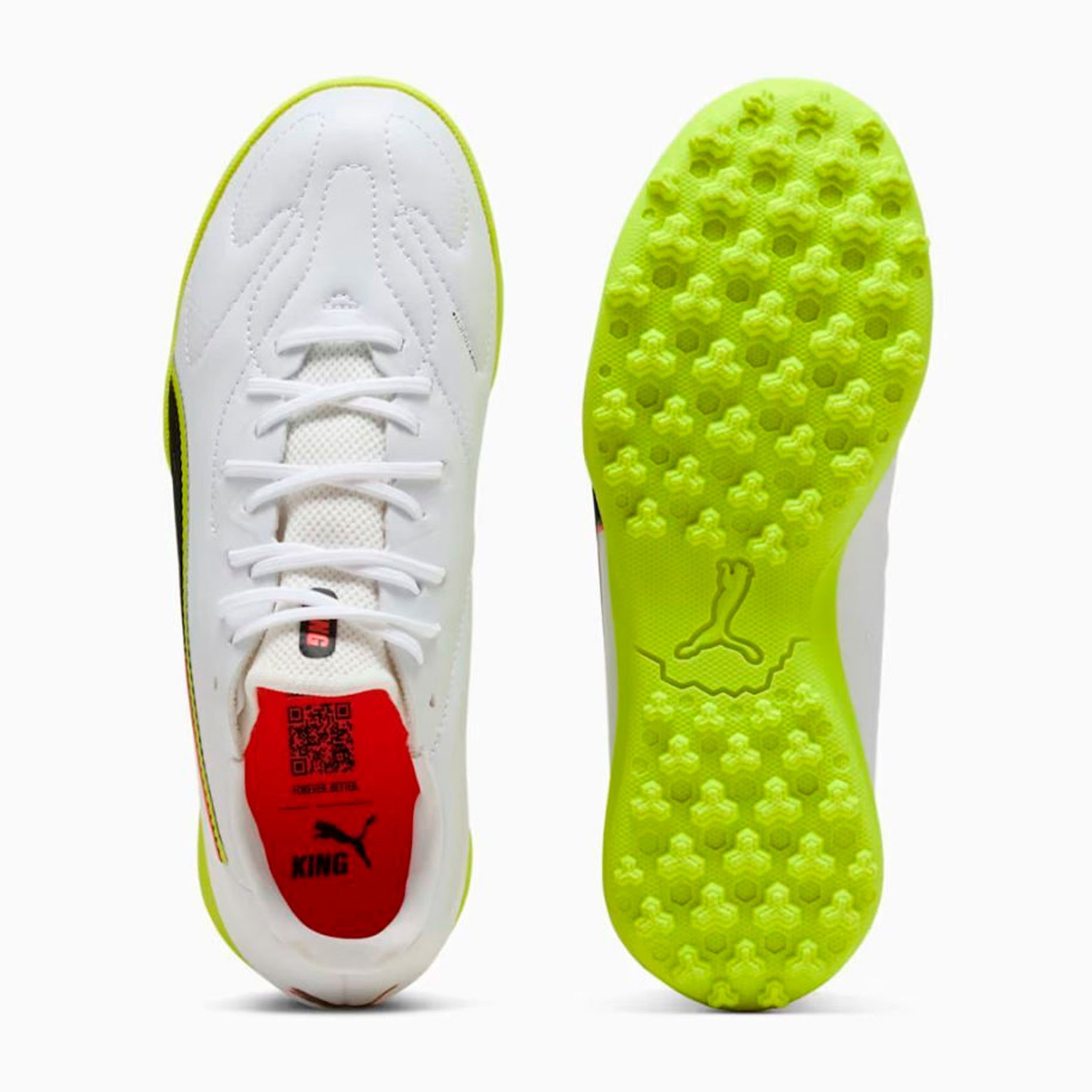 Шиповки детские Puma King 20 Match TF — детская тренировочная модель для игры на жёстких полях с искусственным газоном, где важны контроль, комфорт и уверенное касание мяча. Верх SOFTTOUCH+ обеспечивает мягкое и точное взаимодействие с мячом, отличая хорошую игру от выдающейся, а конструкция из трикотажа без шнурков с мягкими вставками на язычке адаптируется к форме стопы. Ортопедическая подкладка OrthoLite® CustomFit в области пятки и динамическая система шнуровки гарантируют надёжную фиксацию и комфорт на протяжении всего матча или тренировки, помогая юным футболистам сосредоточиться на технике.