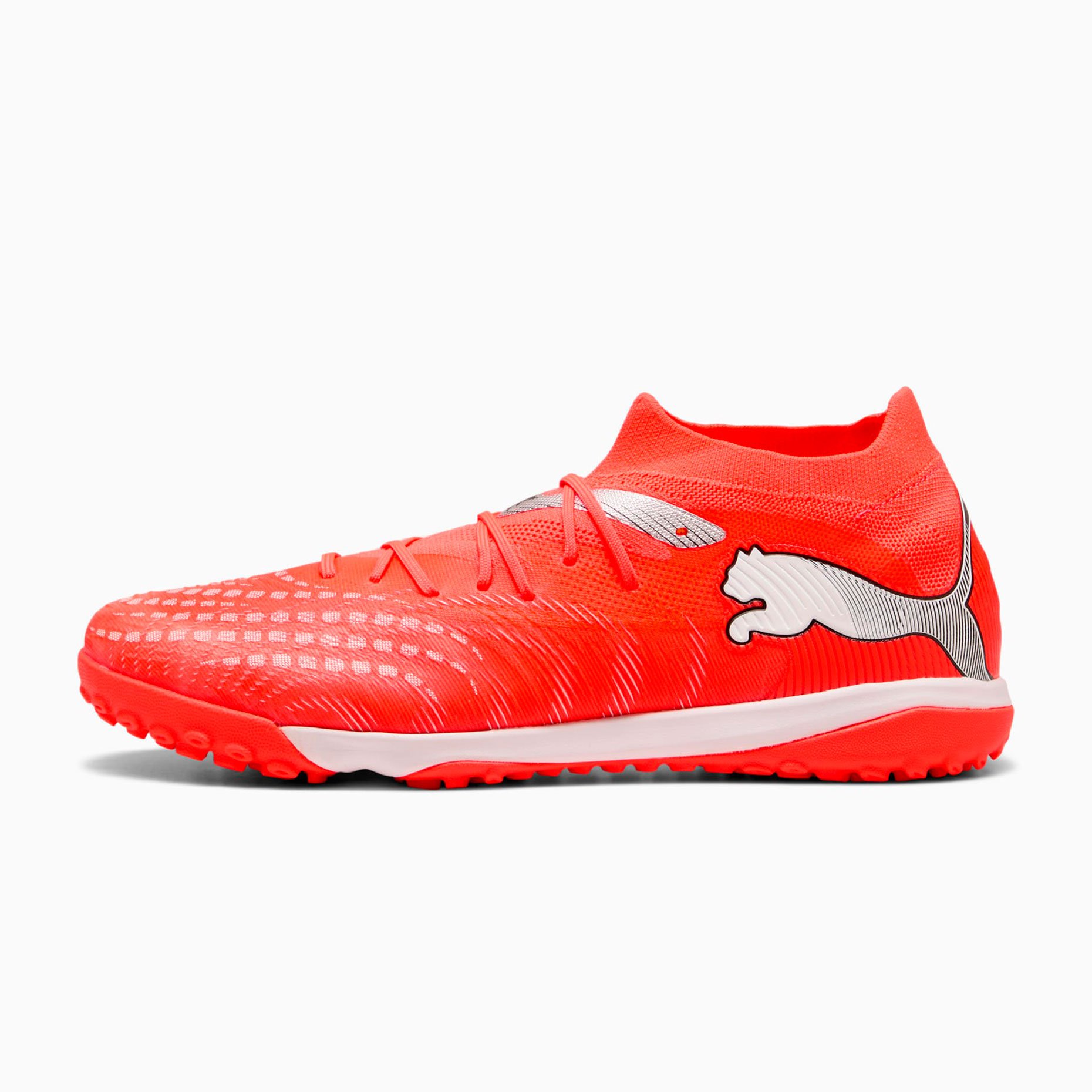 Шиповки Puma Future 9 Match TF — тренировочная модель для игры на жёстких полях с искусственным газоном, где важны креативность, точный контроль мяча и уверенная манёвренность. Верхняя часть обеспечивает гибкую, надёжную и поддерживающую посадку благодаря мягкому лёгкому сетчатому материалу основы, эластичному вязаному воротнику и конструкции средней высоты, которая стабилизирует голеностоп при резких движениях. Целенаправленные рельефные зоны на верхней части улучшают сцепление с мячом, помогая максимально эффективно использовать каждое касание при дриблинге мимо защитников, точных пасах или ударах по воротам.