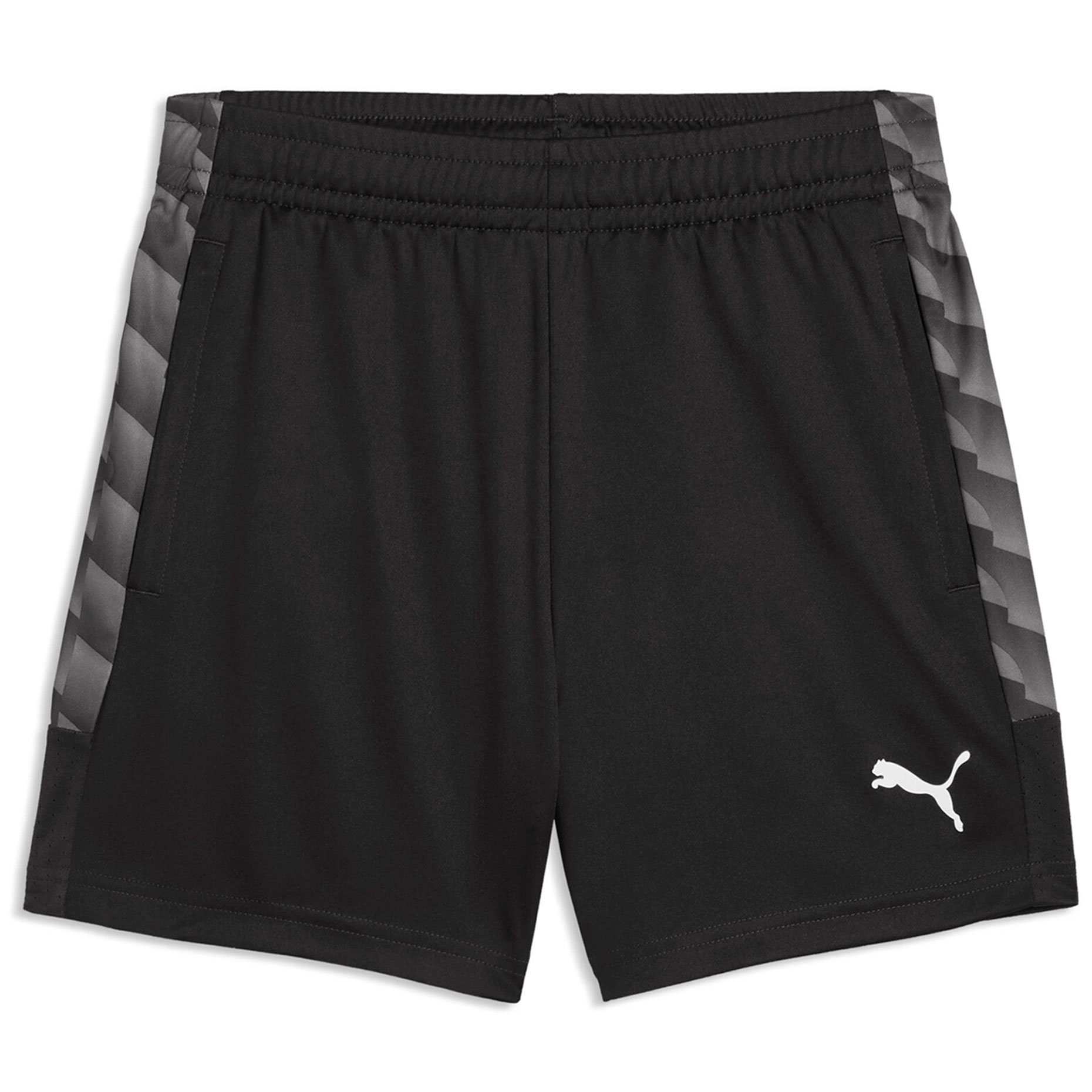 Обычная посадка обеспечивает свободу движений и комфорт во время тренировок и игр. Эластичный пояс с внутренней кулиской позволяет надежно зафиксировать шорты и легко регулировать посадку. Боковые карманы на молниях подходят для безопасного хранения мелких вещей, а боковые панели с графическим принтом, вдохновленным фирменным стилем PUMA Formstripe, придают модели современный спортивный вид. Сетчатые элементы улучшают вентиляцию и обеспечивают дополнительный комфорт во время активности.