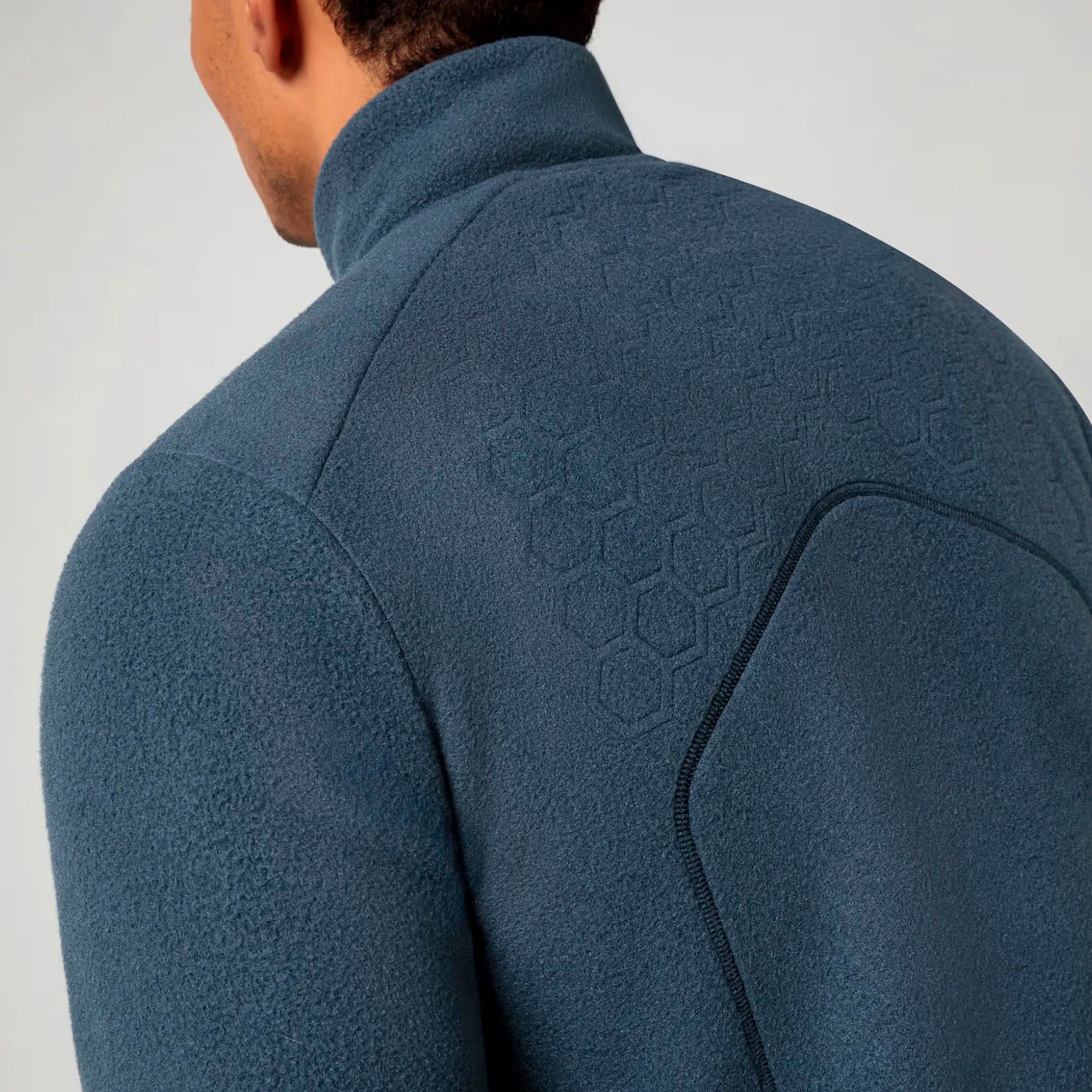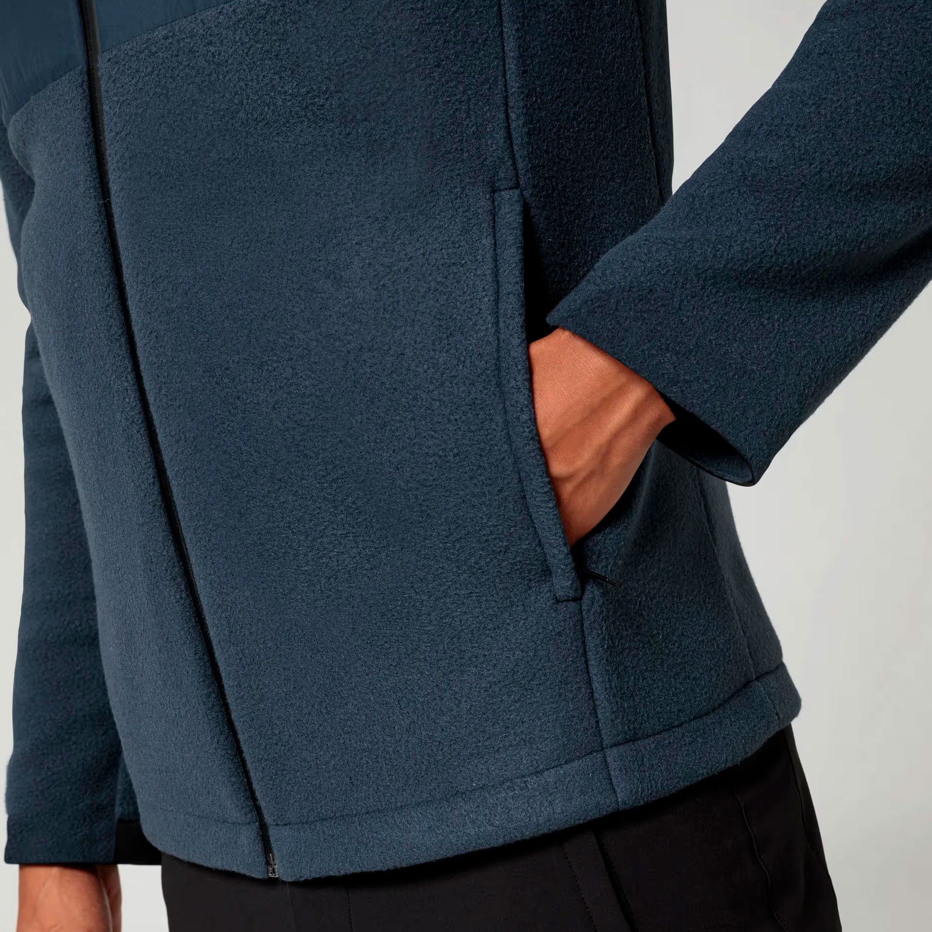 • Мягкая флисовая ткань с тканым накладным слоем спереди — комфорт при носке и дополнительная защита от ветра и механического износа в зонах повышенной нагрузки.
